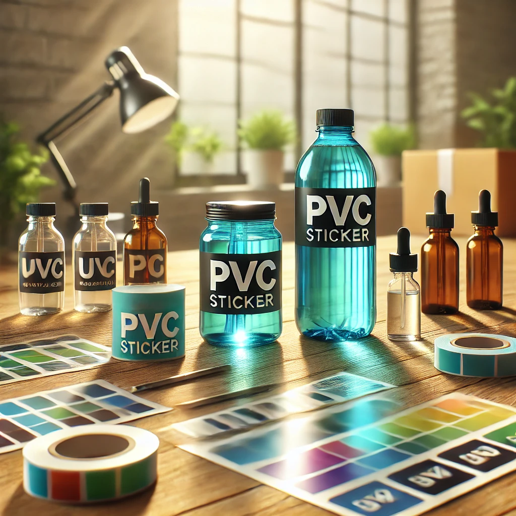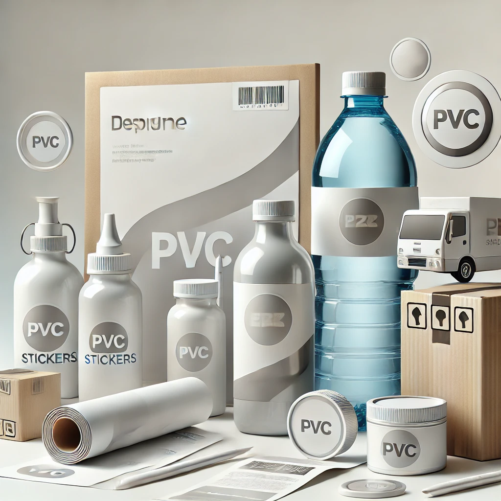 สติ๊กเกอร์ PVC มักใช้ติดบนบรรจุภัณฑ์สินค้าต่างๆ เช่น ขวดน้ำ ผลิตภัณฑ์ดูแลผิว หรืออาหารแช่เย็น เนื่องจากกันน้ำและให้ลุคที่ดูพรีเมียม