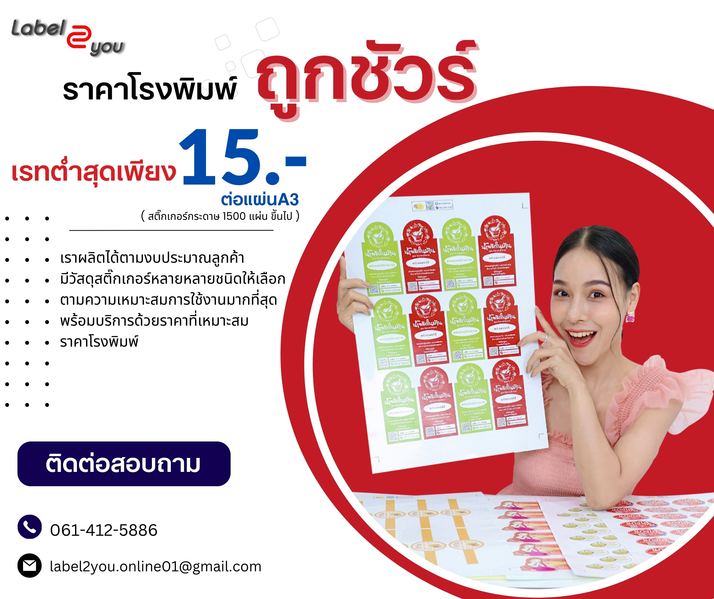 - โรงพิมพ์Label2you เรามีทีมงานมืออาชีพ ที่มีประสบการณ์ในการดูแลลูกค้ามากกว่า10000เคส ดังนั้น ทางเราสามารถให้คำแนะนำในเรื่องการใช้งาน